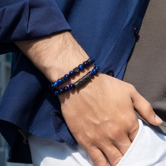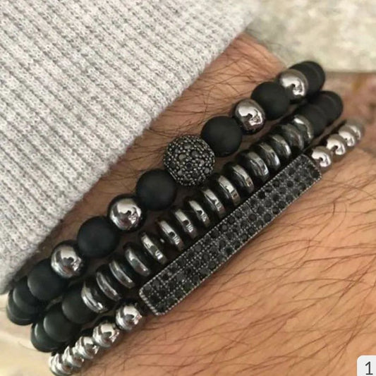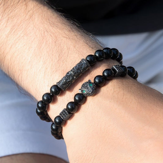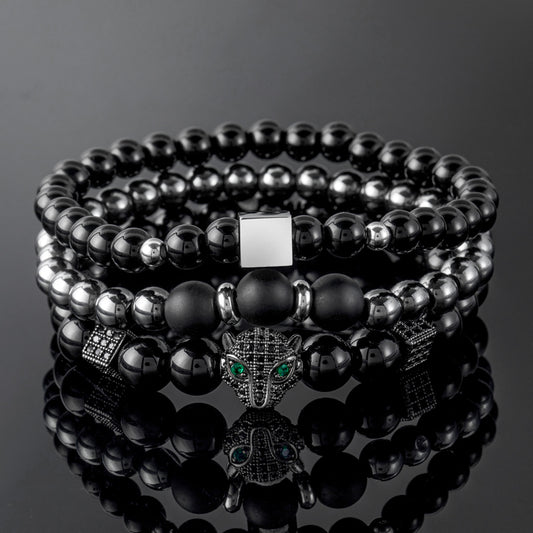 Iced Panther Black Obsidian Beaded Stretch Bracelet