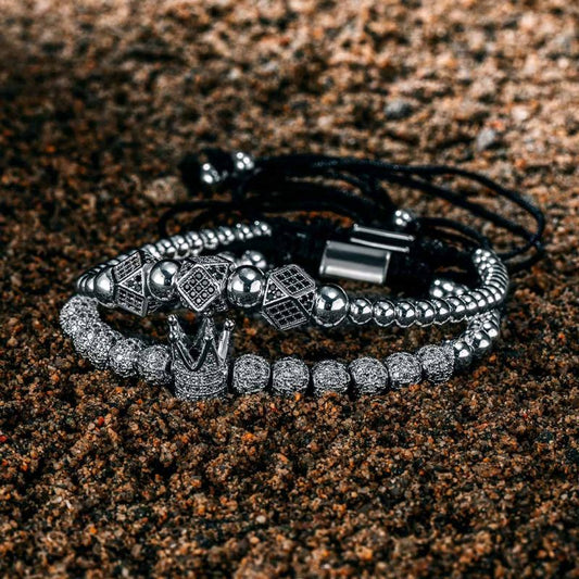 Iced Panther Black Obsidian Beaded Stretch Bracelet