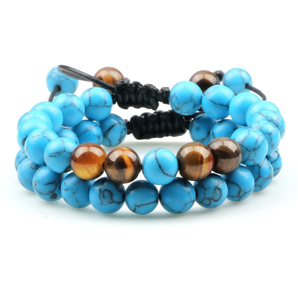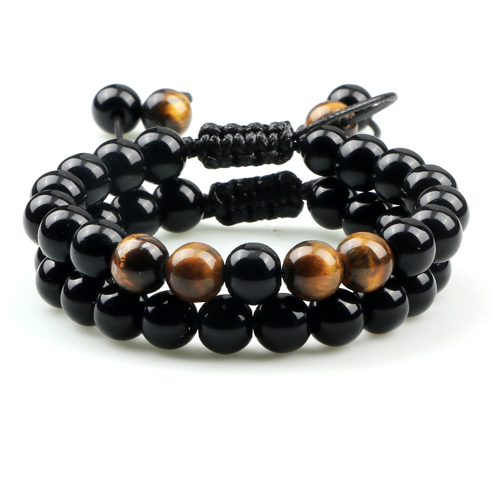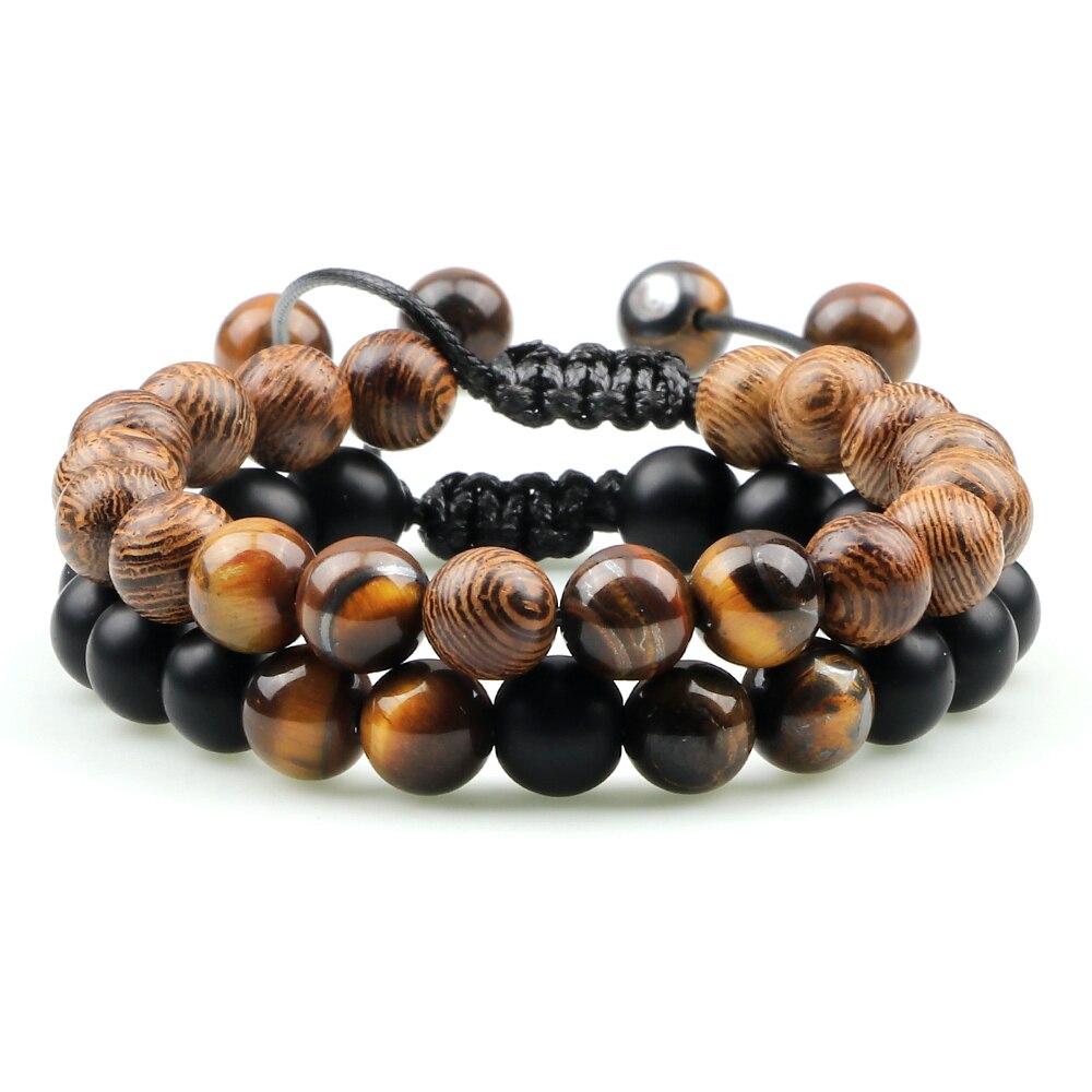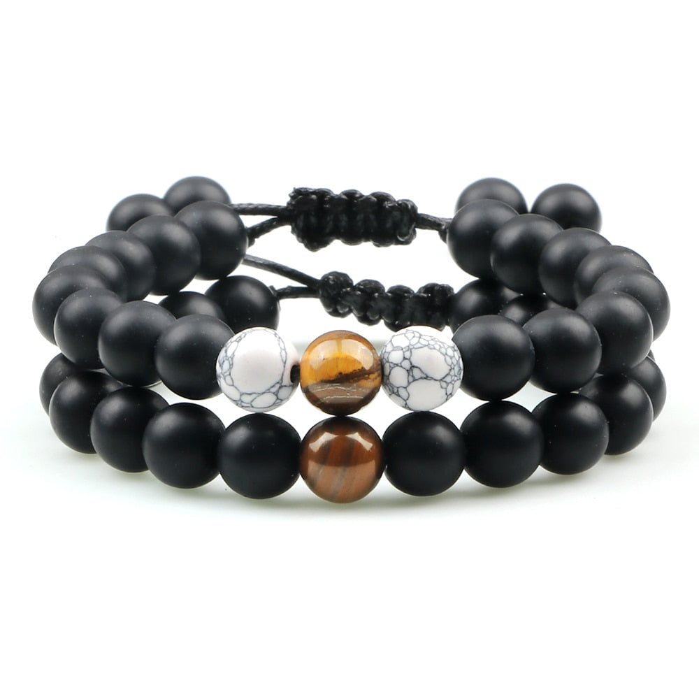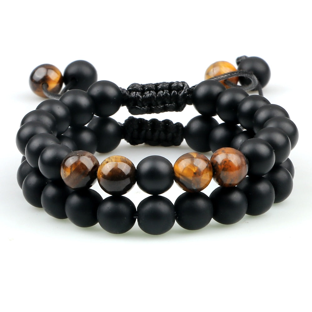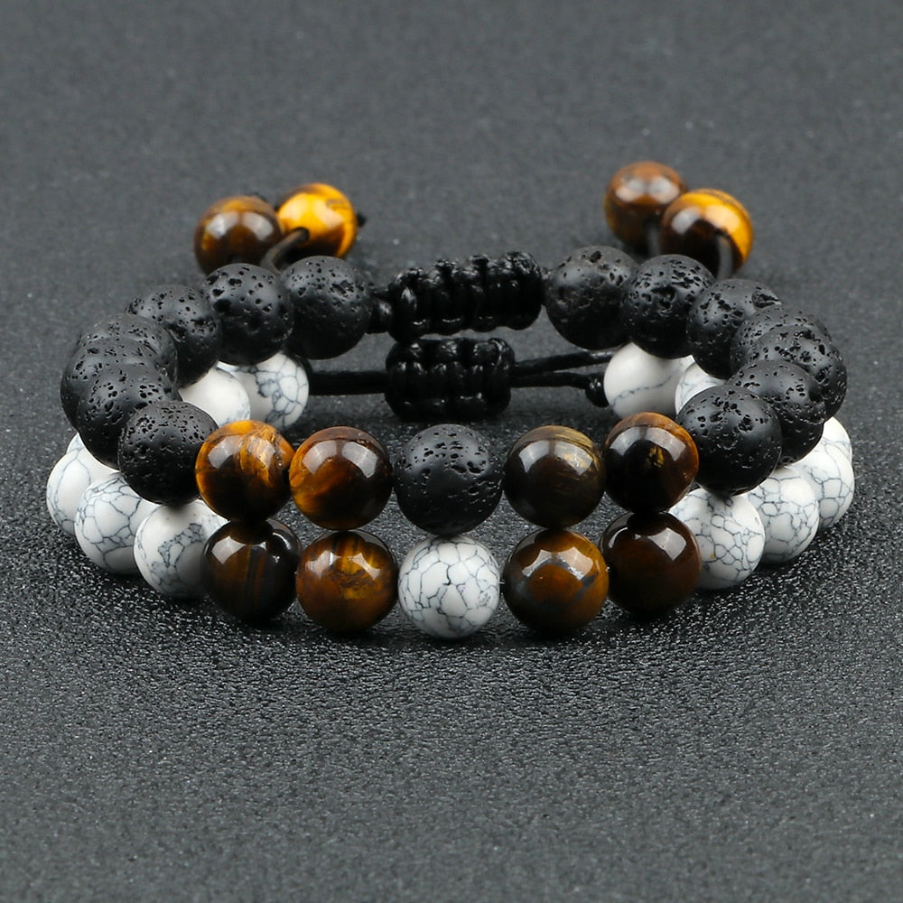 2Pcs Adjustable Braided Natural Stone Beads For Couples Women Men Tiger Eye Lava Bracelet Yoga Jewelry
