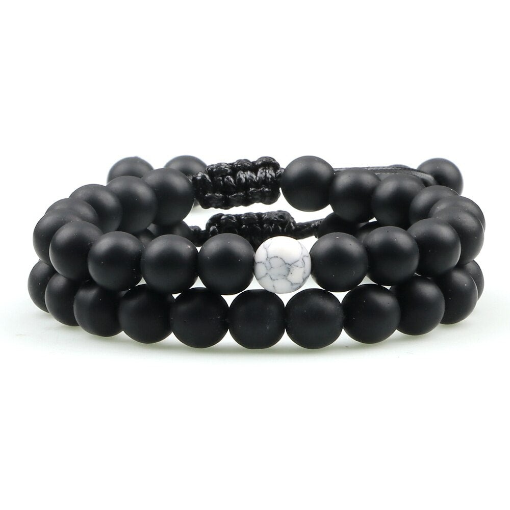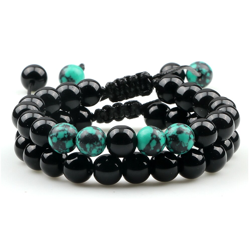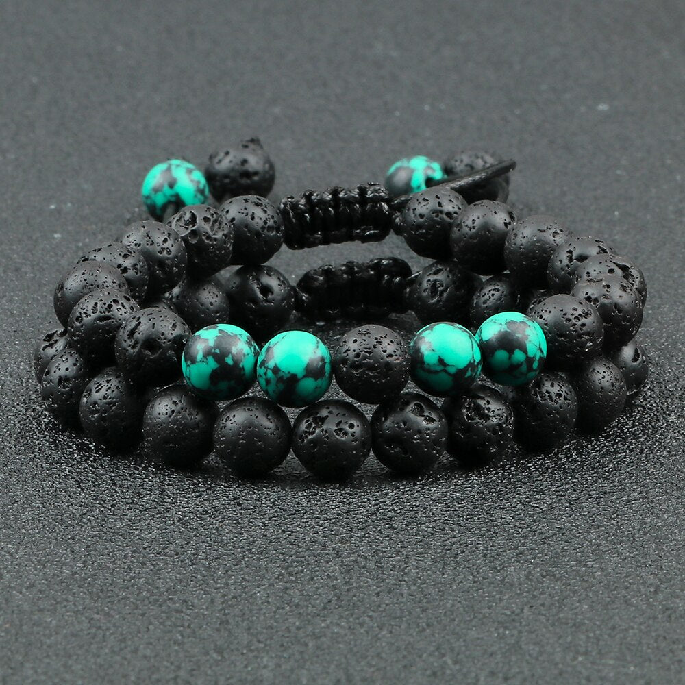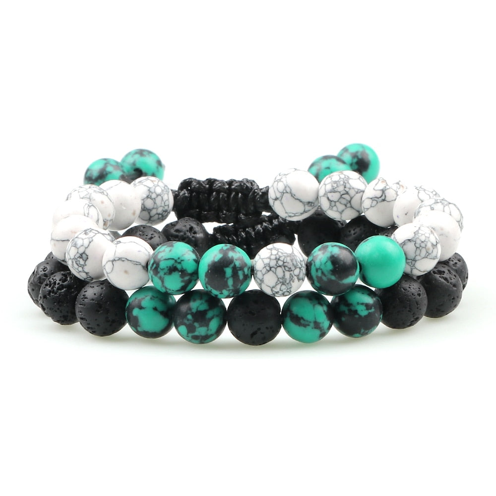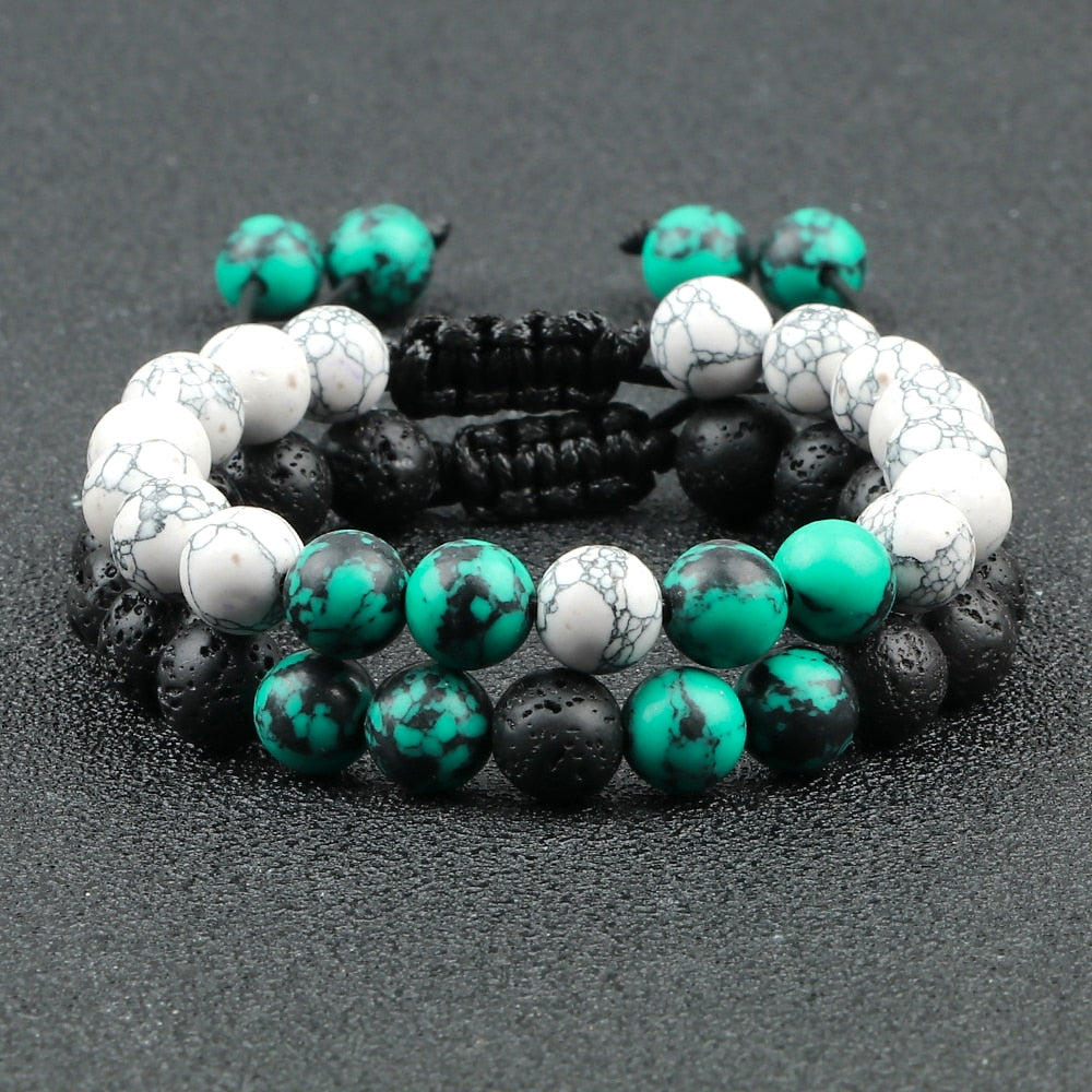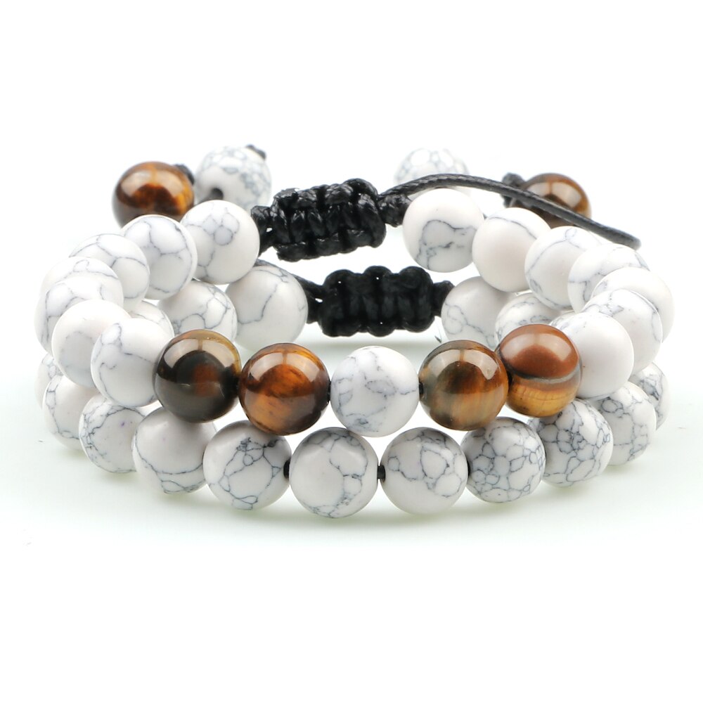 2Pcs Adjustable Braided Natural Stone Beads For Couples Women Men Tiger Eye Lava Bracelet Yoga Jewelry