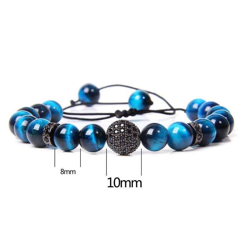 High Quality Natural Royal Blue Tiger Eye Stone Beads Bracelet Men Fashion Adjustable Braided Charm Bracelet Jewelry Gifts Male