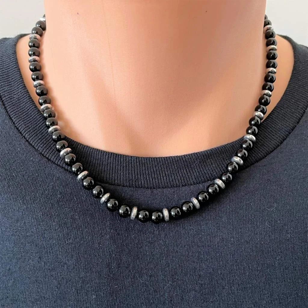 Men's Onyx Gemstone Beaded Crystal Necklace